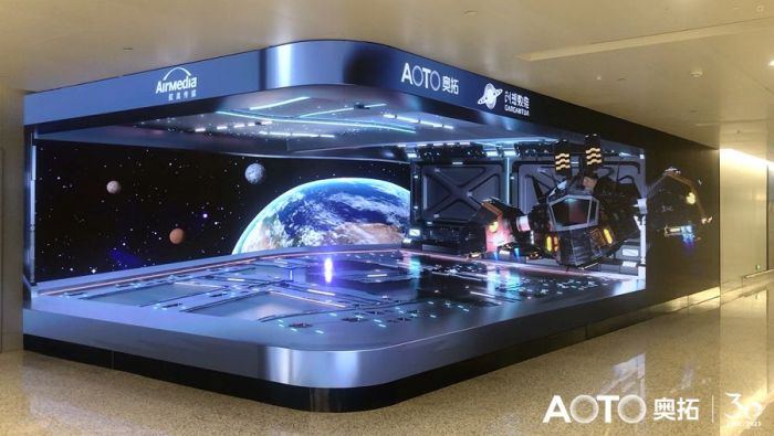 奧拓電子助力杭州蕭山國際機場在辦票大廳、出發(fā)大廳、行李轉(zhuǎn)盤、到達大廳、電梯井等多個關(guān)鍵區(qū)域共建造了30多塊LED顯示屏(包括裸眼3D屏、弧形屏、雙面屏、包柱屏、拐角屏、方形屏等),并提供了配套的LED顯示和裸眼3D解決方案。
