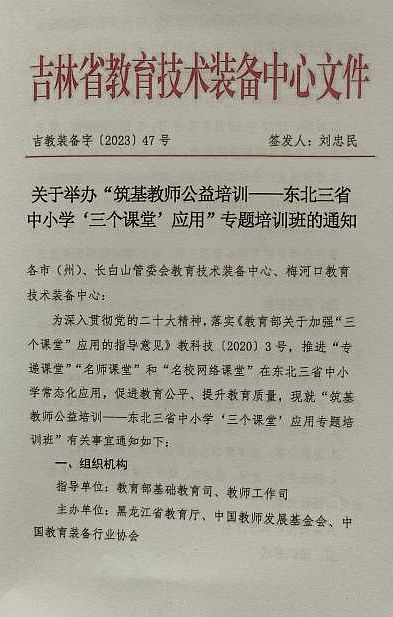為深入貫徹黨的二十大精神,落實《教育部關于加強“三個課堂”應用的指導意見》,推進“專遞課堂”、“名師課堂”和“名校網絡課堂”在廣大中小學常態(tài)化應用,滿足基礎教育階段促進教育公平、提升教育質量的現(xiàn)實需求,創(chuàng)新教育教學模式,推動課堂革命,加快推進教育現(xiàn)代化,由黑龍江省教育廳、中國教師發(fā)展基金會、中國教育裝備行業(yè)協(xié)會主辦,黑龍江教師發(fā)展學院、吉林省教育技術裝備中心、遼寧教育學院承辦,黑龍江省教育裝備行業(yè)協(xié)會協(xié)辦的“筑基教師公益培訓”—東北三省中小學“三個課堂”應用專題培訓會議于2023年10月9日在哈爾濱市舉行。希沃多部門提供專遞課堂案例展示支持。