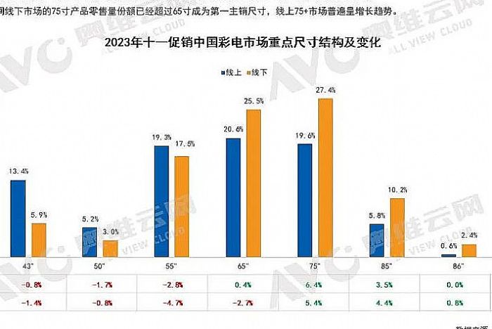另外,23.09.18-23.10.08日內(nèi),大陸彩電銷量中85/86尺寸線也獲得大獲全勝,增幅超過100%。其中,線下市場占比更是歷史性首次達到12.6%的“兩位數(shù)”水平。