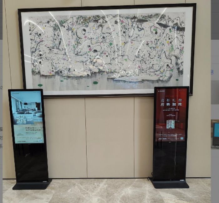 在寶龍營(yíng)銷(xiāo)中心的實(shí)際應(yīng)用中,掌握公共區(qū)域人流量大的位置,可通過(guò)立式廣告機(jī)以圖文、視頻,播放房產(chǎn)宣傳片、樓盤(pán)信息、樣板房介紹、呈現(xiàn)效果圖展示等,為客戶(hù)傳遞資訊服務(wù),促成轉(zhuǎn)化,提升房地產(chǎn)公司數(shù)字化、信息化的高端形象。