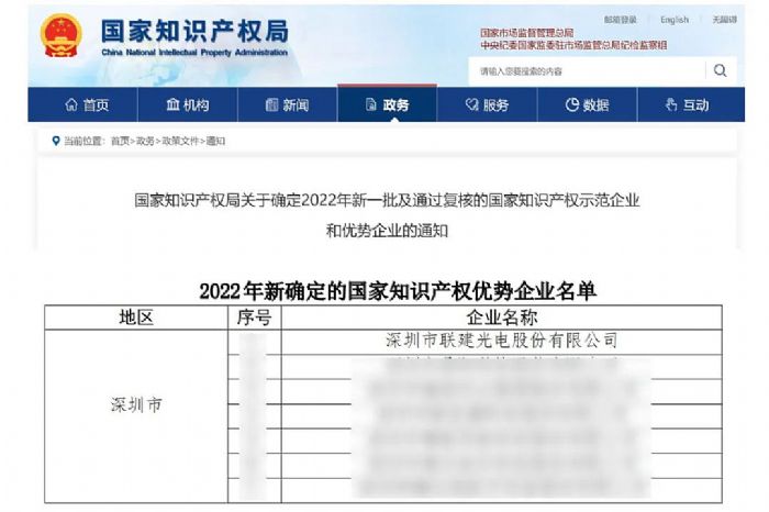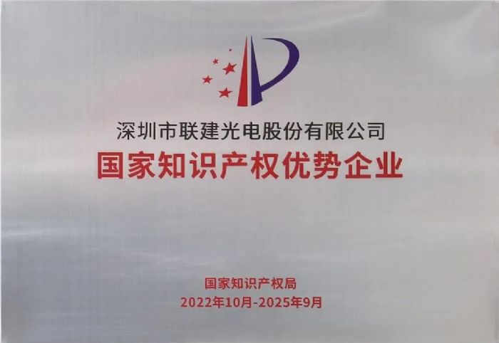 聯(lián)建光電作為深圳高新技術(shù)企業(yè)之一,早已順利通過2022年國家知識(shí)產(chǎn)權(quán)優(yōu)勢企業(yè)的評(píng)定。