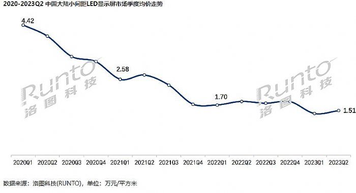 據(jù)洛圖科技數(shù)據(jù)顯示,2023年上半年,中國(guó)大陸小間距LED顯示屏的出貨面積仍然主要集中在P2.5-1.7間距段產(chǎn)品,市占74.1%。即相對(duì)便宜的產(chǎn)品市場(chǎng)份額更大。