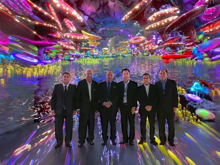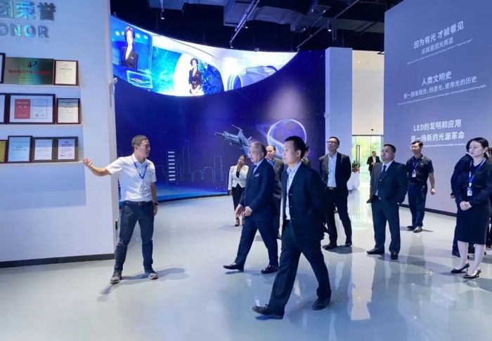 在林洺鋒董事長的陪同下,F(xiàn)rancisco Kalbuadi Lay副總理一行首先參觀了洲明大亞灣展廳,并詳細(xì)了解了洲明Micro LED、LED創(chuàng)意顯示、沉浸式CAVE空間等技術(shù)與場景化解決方案。