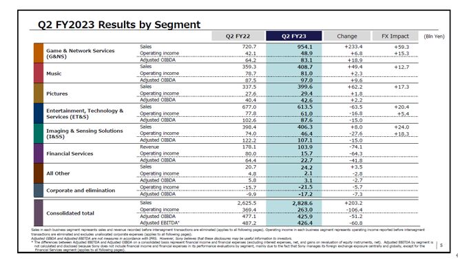 索尼集團2023財年第二季度各業(yè)務(wù)業(yè)績表現(xiàn)