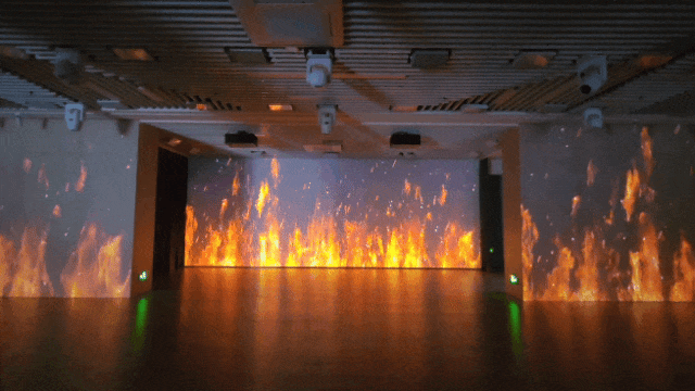 投影范圍從主舞臺(tái)延伸至觀眾席兩側(cè)墻面
