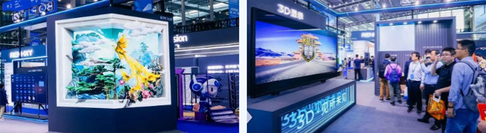 走入京東方展區(qū),巨幅裸眼3D轉(zhuǎn)角屏上,一只巨大的鳳凰展翅騰飛迎面而來,極具視覺沖擊力的3D視效讓現(xiàn)場觀眾紛紛駐足體驗。這面大屏采用京東方百萬級超高對比度Mini LED技術(shù),極致黑態(tài)的絢麗畫面與栩栩如生的3D效果在本屆展會上大放異彩。最大尺寸110英寸8K超高清裸眼3D大屏,可帶來1.5米出屏深度的超高清、超高色域3D立體縱深畫面,極具沉浸感與視覺沖擊力,在游戲互動體驗、大場景展覽展示、商用顯示等領(lǐng)域具有廣闊的應(yīng)用空間。