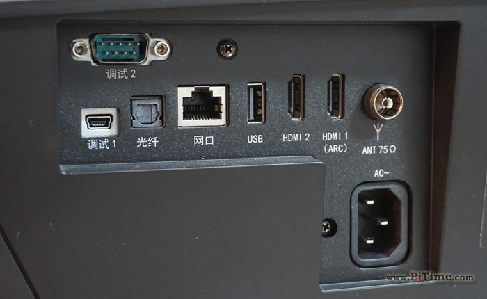 在接口配置方面,中科極光真激光家庭影院X1A應(yīng)該是我們所見過的所有激光電視產(chǎn)品中接口配置最為豐富的產(chǎn)品之一,其中后置了雙HDMI(其中一組帶信號(hào)回傳功能)、一個(gè)USB接口、加上機(jī)身側(cè)面的USB接口即總共配置了兩組USB接口,一個(gè)ANT信號(hào)接口(激光電視標(biāo)準(zhǔn)中規(guī)定的必備接口)、LAN有線網(wǎng)口、光纖接口、兩組調(diào)試接口,豐富的接口配置可以滿足多設(shè)備的連接信號(hào)切換,可以做到無須插拔線纜切換信號(hào)。