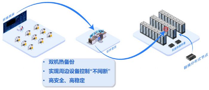 CVS分布式音視頻調(diào)度系統(tǒng)通過配置兩臺中控處理器,雙機同時運行,實現(xiàn)雙機熱備份的功能作用,增強系統(tǒng)的穩(wěn)定性、安全性、可靠性。當(dāng)系統(tǒng)發(fā)生局部故障,主機與備機執(zhí)行無縫切換,保障中控系統(tǒng)正常運行,中控功能“不掉線”,周邊設(shè)備管控“不間斷”。