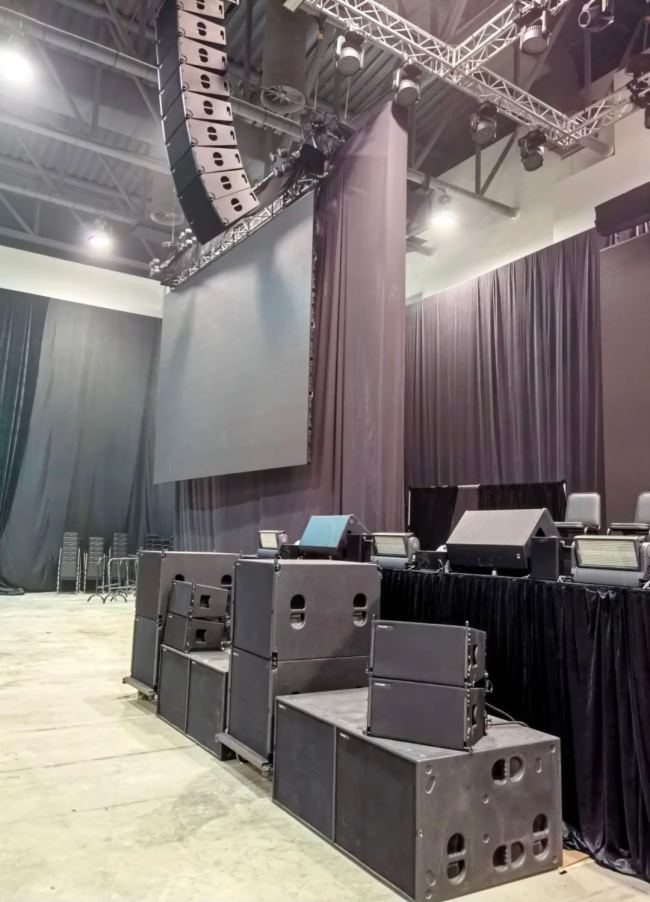 擴(kuò)聲系統(tǒng)的搭建至關(guān)重要,它將直接影響到演出的效果。因此,我們?cè)跀U(kuò)聲設(shè)備上做了充足的準(zhǔn)備。為了確保現(xiàn)場(chǎng)擴(kuò)聲系統(tǒng)的高品質(zhì)呈現(xiàn),采用了德國(guó)TWAUDiO VERA線陣列系統(tǒng) ,包括VERA36三分頻垂直線陣列揚(yáng)聲器 、VERA10 垂直線陣列揚(yáng)聲器 ,搭配VERA S33心形指向低音 ,雙21寸超大型超低BSX 為現(xiàn)場(chǎng)提供了渾厚強(qiáng)勁的低頻擴(kuò)展。