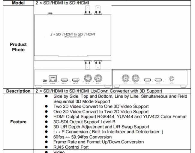 這一款最高分辨率支持1080P,涵蓋了多種SDI格式支持,以及HDMI 2.0輸入,憑借其專業(yè)的視頻處理功能、多樣的輸入輸出格式支持、以及3D視頻轉(zhuǎn)換能力,適合專業(yè)的如醫(yī)學(xué)成像、視頻制作等應(yīng)用場景。
