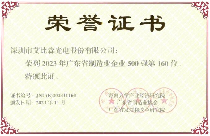 艾比森入選“2023年廣東省制造業(yè)企業(yè)500強(qiáng)”