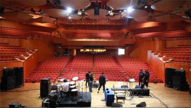 為了實(shí)現(xiàn)對廳堂反射能量的精確控制,在音樂廳這種長混響環(huán)境中獲得良好的聲音解析度,保證最佳音響效果,本次音樂節(jié)采用了分區(qū)覆蓋的擴(kuò)聲設(shè)計(jì),流動(dòng)主擴(kuò)揚(yáng)聲器系統(tǒng)采用12只EAW ANNA自適應(yīng)全頻揚(yáng)聲器落地?cái)[放于舞臺兩側(cè),利用其強(qiáng)大波束控制能力,將系統(tǒng)中高頻能量的覆蓋控制在一層觀眾席,避免了二層眺臺反射能量對舞臺演員造成干擾。二層觀眾則通過音樂廳的固定安裝系統(tǒng)進(jìn)行覆蓋。