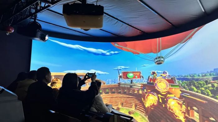 裸眼3D軌道影院是主題樂(lè)園中的明星項(xiàng)目。觀眾無(wú)需佩戴眼鏡,也能在巨大的環(huán)繞畫面前體驗(yàn)到超強(qiáng)沉浸感。