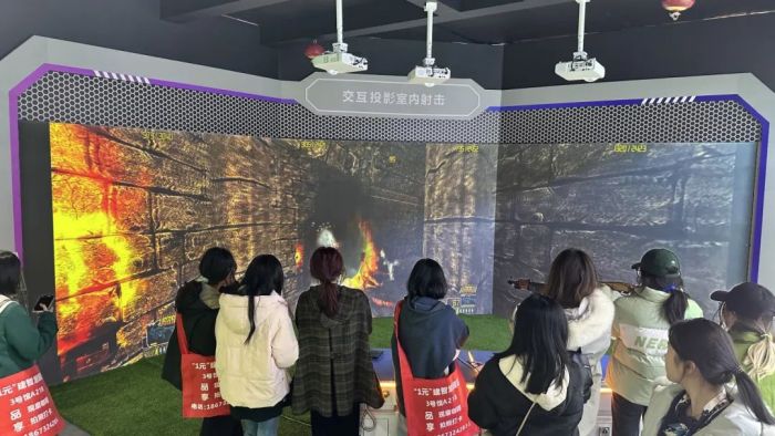 射擊游戲的環(huán)繞空間,由3臺(tái)愛(ài)普生高亮激光短焦投影機(jī)CB-L210SF融合打造。超大畫面讓玩家清晰捕捉每個(gè)戰(zhàn)斗細(xì)節(jié)。更有實(shí)時(shí)競(jìng)技反饋與音響的雙重加持,帶來(lái)“砰”然心動(dòng)的射擊體驗(yàn),讓大朋友、小朋友都欲罷不能!