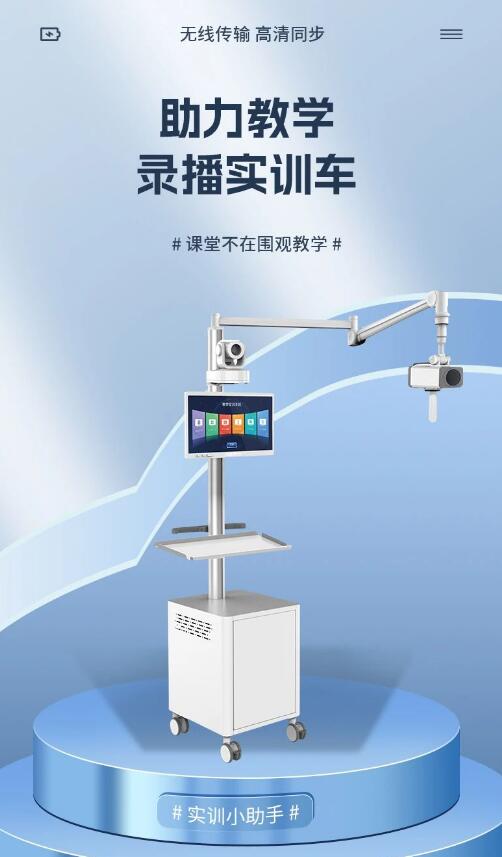 實(shí)訓(xùn)教學(xué)系統(tǒng)高度集成化,免安裝免布線,集無線傳輸、錄制、直播、點(diǎn)播、數(shù)字音頻處理、無線投屏等功能于一體,人性化操作,簡(jiǎn)單方便,快捷高效。專為各種實(shí)訓(xùn)場(chǎng)所、操作車間打造的一套全覆蓋移動(dòng)式拍攝系統(tǒng),支持多個(gè)機(jī)位組成對(duì)拍攝區(qū)域的多角度高清拍攝,專業(yè)級(jí)遠(yuǎn)距離無線傳輸技術(shù)(5.8G)減少因環(huán)境因素造成的視頻傳輸不穩(wěn)定現(xiàn)象;底部采用萬(wàn)向滾輪和儲(chǔ)物箱結(jié)構(gòu),配備萬(wàn)向搖臂與11.6寸高清觸摸顯示屏,可通過實(shí)時(shí)畫面調(diào)整攝像機(jī)的拍攝角度。