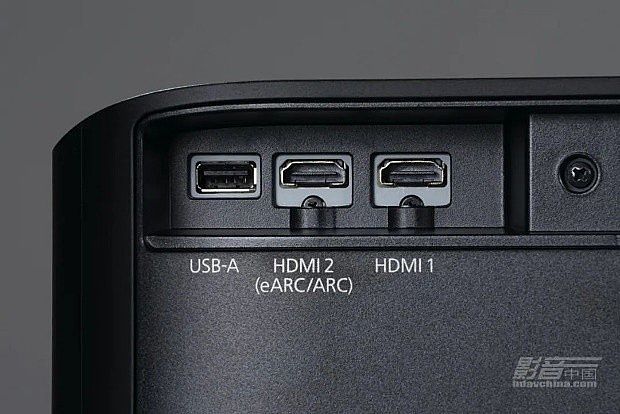 所有I/O接口都集中在機(jī)身背面,當(dāng)中包括了兩個(gè)重要的HDMI接口,如果需要外接Soundbar回音壁則建議使用支持eARC功能的HDMI 2口