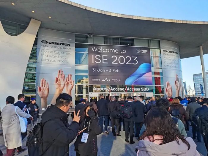 ISE 2023共有1054家全球企業(yè)參展,覆蓋專業(yè)視聽、電子系統(tǒng)集成、燈光音響、智能建筑領(lǐng)域,吸引了來自150多個(gè)國家/地區(qū)的專業(yè)視聽買家和垂直市場終端用戶(如政府、金融、交通、能源、教育、安防、娛樂、智能家居等)參觀。