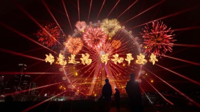 湖北武漢長江元宵主題燈光秀。 元宵佳節(jié),武漢長江元宵主題燈光秀以元宵節(jié)傳統(tǒng)民俗活動中的吃湯圓、賞花燈、猜燈謎、放煙花為背景,結(jié)合“玉兔迎春,邁向未來”的新春主題,展現(xiàn)出一幅華燈璀璨、福星高照的美麗畫卷。