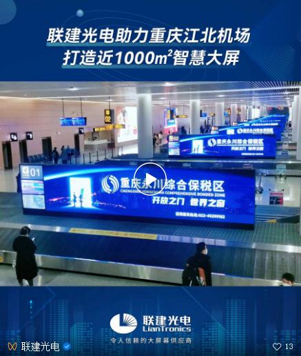 從1月17日起,春節(jié)返程高峰,江北機場日均客流量達到11萬人次。而聯(lián)建光電為其T3航站樓新打造的9套總面積過200㎡的小間距雙面屏已如期投入使用,再次助力重慶江北機場數(shù)字信息化建設(shè)。