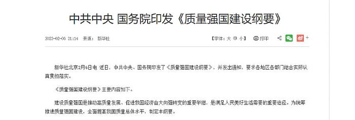 日前,中共中央、國務院印發(fā)了《質(zhì)量強國建設綱要》,并明確提到了未來要“形成一大批質(zhì)量過硬、優(yōu)勢明顯的中國品牌”,“增強企業(yè)質(zhì)量和品牌發(fā)展能力”,中國產(chǎn)品向中國品牌轉(zhuǎn)變。