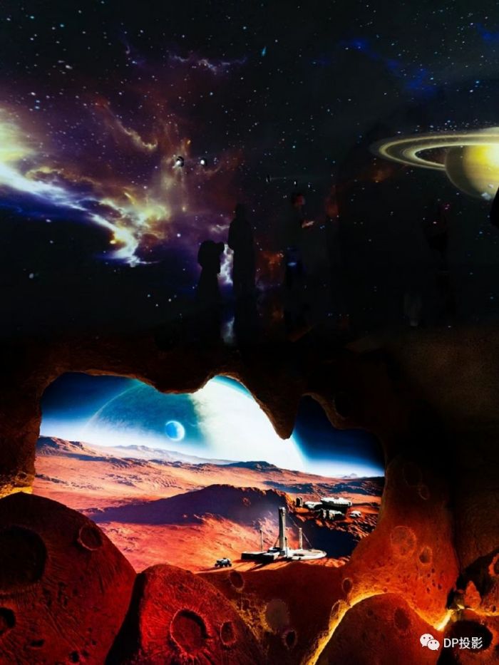 “洞艦1號(hào)”主打未來廢墟地下城主題,利用虛實(shí)融合、智能感知、實(shí)時(shí)交互的沉浸式文旅體驗(yàn)新技術(shù),滿足新時(shí)代游客求新求變的需求。DP作為顯示行業(yè)的領(lǐng)導(dǎo)廠商,其高質(zhì)量投影產(chǎn)品成功入選本項(xiàng)目,用影像的科技手段,助力“洞艦1號(hào)”這一新IP的打造。項(xiàng)目采用了DP的E-Vision Laser系列投影機(jī)18臺(tái),實(shí)現(xiàn)了高難度的防空洞內(nèi)隧道型沉浸式投影,圓弧形頂?shù)谋砻娌灰?guī)則投影面積,寬達(dá)6.5米,高5米,深16米。星際避難所、地下城避難區(qū)、星際逃生區(qū)……這些科幻畫面通過光影交互、全息天幕等技術(shù)一一呈現(xiàn),讓觀眾在炫酷的高科技光影秀里體驗(yàn)科幻地下城逃生的現(xiàn)實(shí)感。
