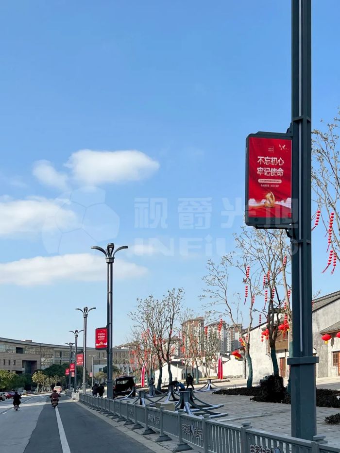 2023年1月,視爵光旭為無錫市堰新社區(qū)打造了9組領(lǐng)航系列雙面屏。這些屏幕安裝在社區(qū)街道的路燈桿上,以裝飾街道并向市民傳達(dá)多方面信息。
