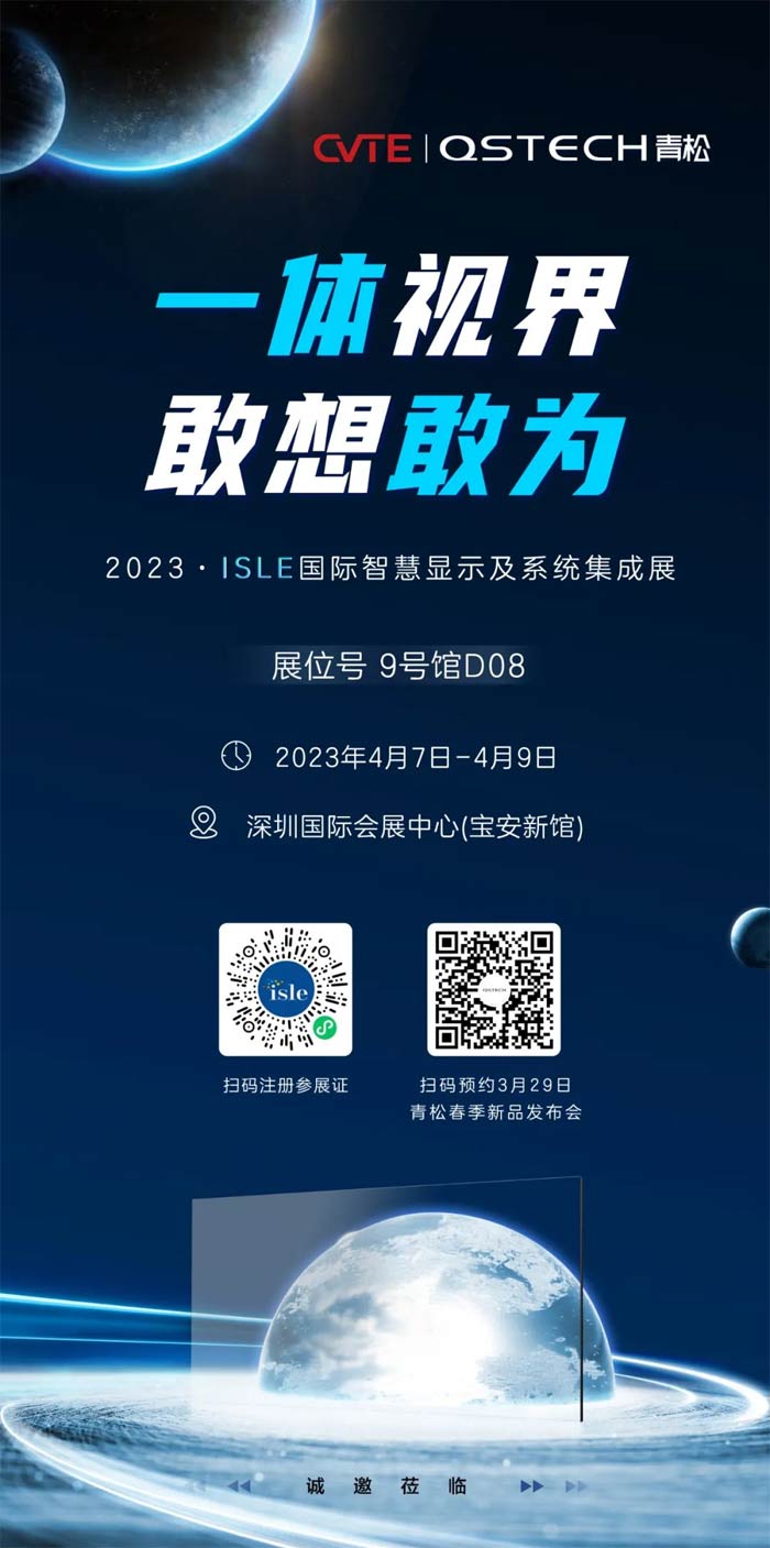 CVTE視源股份旗下青松光電繼首次提出“五合一”高集成技術后,再次定義LED一體化,打造新一代專家。何為“工程一體化”?一體化有哪些優(yōu)勢?青松光電如何“敢想敢為”?如何打造“一體視界”?等待您親臨ISLE 2023現場探索。