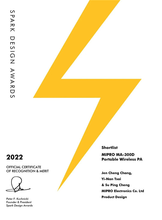 MIPRO MA300D無線擴音系統(tǒng)榮獲星火國際設(shè)計大獎以及美國IDA國際設(shè)計大獎。