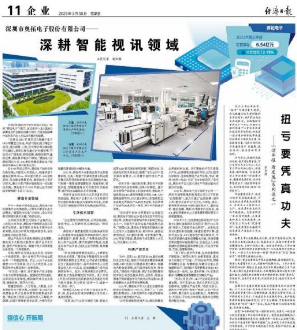 自1993年成立至今,奧拓電子始終堅持創(chuàng)新發(fā)展,不斷加大科技投入,相繼突破了超高分辨率Micro LED顯示技術(shù)、64K控制系統(tǒng)、網(wǎng)點數(shù)字畫像系統(tǒng)、虛擬數(shù)字人等多項技術(shù),著力為客戶提供智能視訊一站式解決方案。奧拓電子于2022年被認(rèn)定為國家級專精特新“小巨人”企業(yè)。
