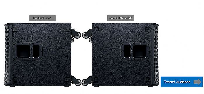 圖1 –?兩個設(shè)置了心型聲場的KS118低頻揚(yáng)聲器,展現(xiàn)了心型聲波輸出。