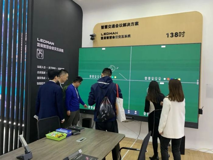 同樣吸睛的還有雷曼展出的智慧交通會議解決方案,138吋雷曼智慧會議交互系統(tǒng)集成書寫白板、無限投屏、文件管理、視頻會議、智能人臉跟蹤、智能拾音擴音等多種功能,為交通行業(yè)客戶提供協(xié)同更高效,溝通更順暢的智慧會議體驗。