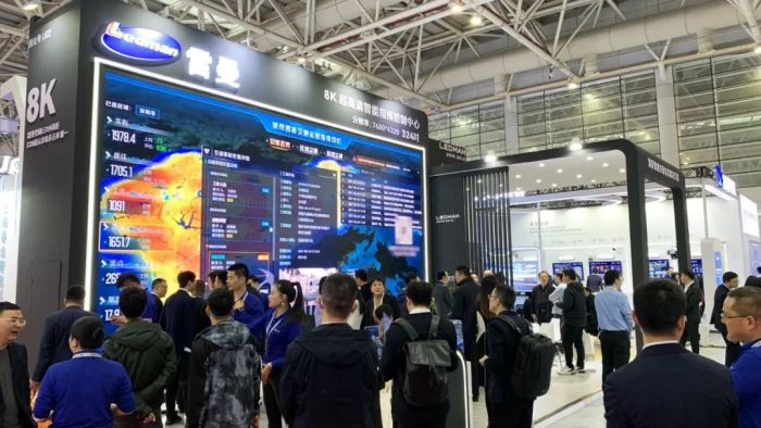 324吋8K Micro LED超高清智能指揮控制解決方案以超大尺寸、8K超高清畫質(zhì)震撼亮相本次CEIC,吸引了眾多交通行業(yè)的專業(yè)客戶駐足觀看?蛻魝兗娂娚锨敖嚯x觀摩產(chǎn)品并進行技術(shù)交流,對雷曼超高清顯示產(chǎn)品及解決方案給予高度好評和稱贊。