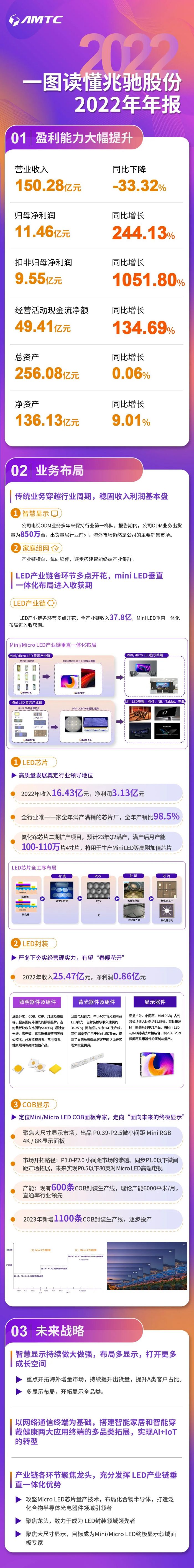 兆馳半導(dǎo)體 2022 年實(shí)現(xiàn)收入 16.43 億元,凈利潤(rùn) 3.13 億元,是全行業(yè)唯一一家全年滿產(chǎn)滿銷及扣非后較大幅度盈利的芯片廠。公司在南昌投資建設(shè) LED 芯片研發(fā)及生產(chǎn)基地,依托集團(tuán)信息數(shù)據(jù)系統(tǒng)、全套自動(dòng)化生產(chǎn)設(shè)備、業(yè)內(nèi)最大的單一主體廠房及全工序布局,已實(shí)現(xiàn)全智能化生產(chǎn)的現(xiàn)代化智造公司。