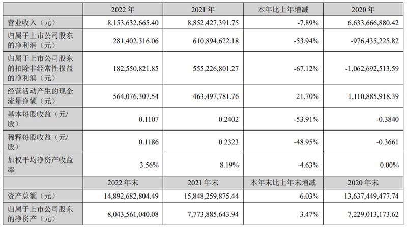 2023年4月3日,利亞德發(fā)布2022年年度報(bào)告,財(cái)報(bào)顯示:2022年利亞德營業(yè)收入約81.54億元,同比減少7.89%;歸屬于上市公司股東的凈利潤約2.81億元,同比減少53.94%;基本每股收益0.1107元,同比減少53.91%。