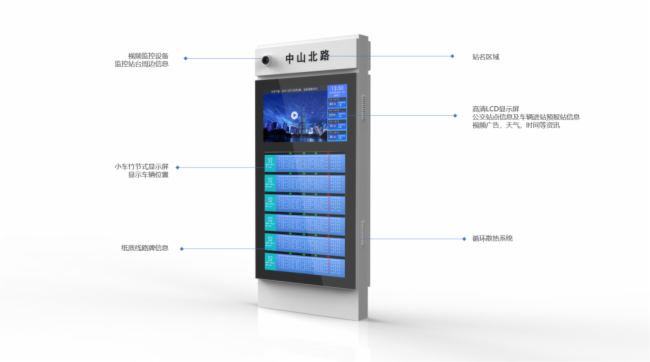 ?低曤娮诱九 可與公交調(diào)度平臺相對接,獲取車輛當前位置信息,并測算轉(zhuǎn)換為到站時間及距離,實時顯示在電子站牌屏幕上,亦支持通過語音進行播報?萍假x能提升居民出行體驗,助力公共交通建設(shè)事業(yè)新發(fā)展。