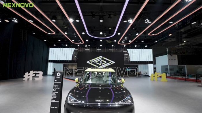 作為梅賽德斯-奔馳和吉利汽車集團(tuán)旗下輕奢品牌,smart4.1館4A01展臺主背景采用晶泓科技最新一代的“Drive-In LED 發(fā)光燈珠”技術(shù)產(chǎn)品——NSN系列LED光電玻璃打造。發(fā)布會現(xiàn)場多款車型盛大亮相,酷炫、通透率高達(dá)90%以上的光電玻璃與smart『都市精靈』的品牌個性達(dá)成深度契合,共同演繹極具現(xiàn)代感的視、聽、觸、嗅、體感的全方位智慧出行場景Smart Solution。