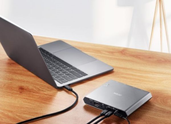 通過(guò)外接式切換按鍵,使用者還可以在2臺(tái)USB-C筆記本電腦之間實(shí)現(xiàn)輕松切換,需要處理復(fù)雜數(shù)據(jù)時(shí)無(wú)需移動(dòng)工位或拔下耳機(jī)、攝像頭等USB外圍設(shè)備。同時(shí),該產(chǎn)品還擁有USB-C PD端口Power Delivery 3.0電力傳輸,可為筆記本電腦提供高達(dá)100W的輸出功率,使用者僅需自備一個(gè)USB-C電源適配器,即可獲得高效充電體驗(yàn)。