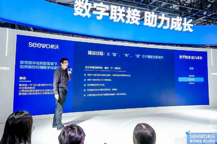 近日,在第81屆中國教育裝備展示會現(xiàn)場,一場交流會吸引眾多的現(xiàn)場觀眾駐足。江西省教育網(wǎng)絡(luò)安全和信息化專家委員會專家、景德鎮(zhèn)一中現(xiàn)代教育中心主任姜宏,以“教育數(shù)字化轉(zhuǎn)型背景下,如何做好校園數(shù)字化建設(shè)?”為主題,分享景德鎮(zhèn)一中的教育數(shù)字化轉(zhuǎn)型經(jīng)驗(yàn)。
