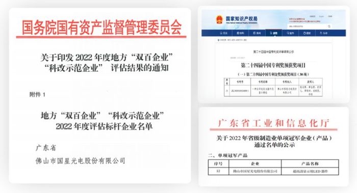 一系列數(shù)據(jù)見(jiàn)證國(guó)星光電科技創(chuàng)新的碩果。目前,公司累計(jì)已申請(qǐng)專(zhuān)利超千項(xiàng),發(fā)明專(zhuān)利超500項(xiàng),各項(xiàng)專(zhuān)利數(shù)量在行業(yè)排名第一;連續(xù)5年位居全球顯示屏封裝器件產(chǎn)值第一、白光器件高端應(yīng)用領(lǐng)域市場(chǎng)規(guī)模位居國(guó)內(nèi)前列。作為省屬科技型企業(yè)的優(yōu)秀代表,公司先后榮獲國(guó)家科技進(jìn)步一等獎(jiǎng)、二等獎(jiǎng)等榮譽(yù),并于今年獲評(píng)國(guó)家科改示范企業(yè)最高“標(biāo)桿”等級(jí)、摘下中國(guó)專(zhuān)利金獎(jiǎng)、入選廣東省單項(xiàng)冠軍產(chǎn)品,以創(chuàng)新擦亮“科創(chuàng)名片”,以實(shí)干賦能民族品牌。