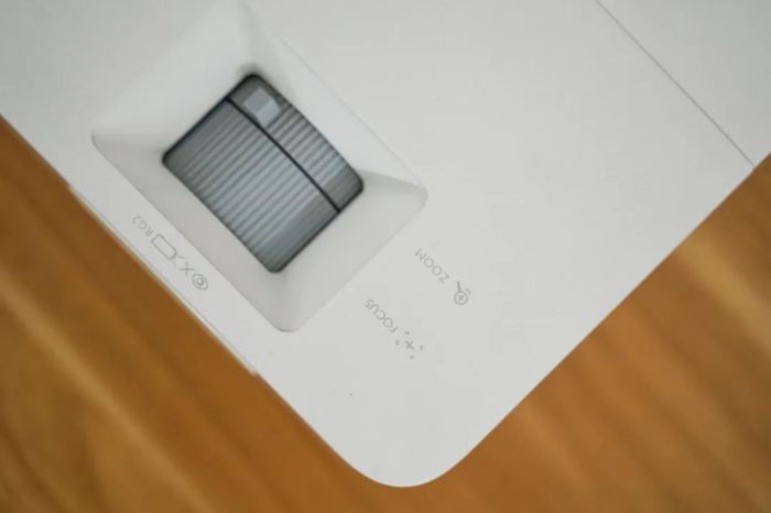 而頂部則可以通過物理旋鈕控制變焦和對焦。1.3倍大變焦,根據(jù)空間靈活調(diào)整投影畫面大小毫無壓力。