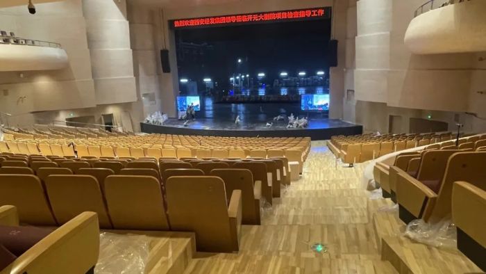 開元大劇院的總建筑面積約80000㎡的公共文化設(shè)施,擁有一個(gè)超過1200座的大劇場(chǎng)、一個(gè)500座的小劇場(chǎng)以及一個(gè)6000㎡的展演空間,可滿足歌劇、話劇、舞劇、音樂劇、交響音樂會(huì)、戲曲等藝術(shù)表演形式的使用需要。走進(jìn)劇院的大劇場(chǎng),內(nèi)部舞臺(tái)構(gòu)造也是別具匠心。觀眾廳在結(jié)構(gòu)上層層展開,形似“綻放的花朵”,扇形構(gòu)件向外傾斜、極具動(dòng)感,表達(dá)著獨(dú)特的藝術(shù)節(jié)奏。觀眾廳頂部的“寶相花”鏤空頂,內(nèi)部為滿天星燈飾,如花蕊綻放。