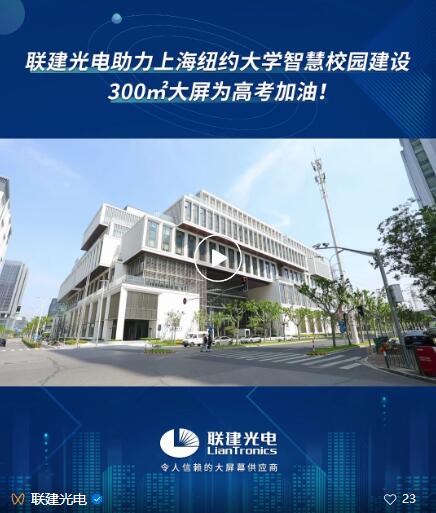 建智慧校園,慶金榜題名!聯(lián)建光電300㎡大屏點亮上海紐約大學(xué)