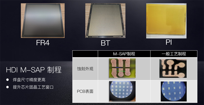 采用HDI M-SAP制程,在實現(xiàn)焊盤尺寸精度更高的同時,提升芯片固晶工藝窗口。