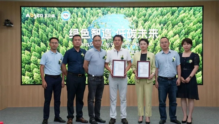 6月26日,國(guó)際權(quán)威檢測(cè)認(rèn)證機(jī)構(gòu)TÜV南德意志集團(tuán)(下稱“TÜV南德”)向艾比森現(xiàn)場(chǎng)頒發(fā)了LED顯示產(chǎn)品碳足跡核查聲明。艾比森董事長(zhǎng)丁彥輝、副總裁陳楊與TÜV南德大中華區(qū)消費(fèi)產(chǎn)品服務(wù)高級(jí)副總裁陳灝漩先生一行共同出席聲明頒發(fā)儀式。