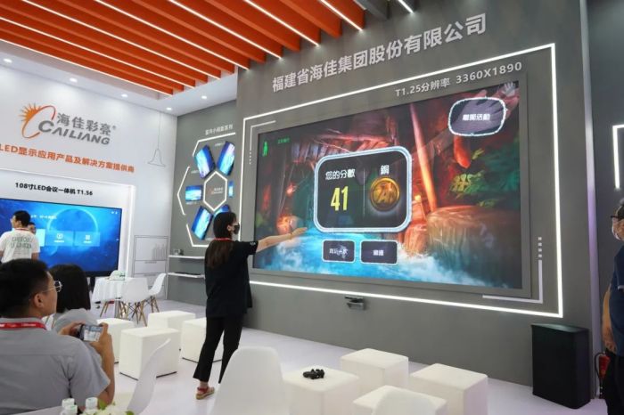 海佳彩亮展示了“超清視界”“節(jié)能環(huán)!薄奥阊蹠r代”三大產(chǎn)品列陣,F(xiàn)場不僅可以近距離感受超清小間距系列產(chǎn)品帶來多彩的視覺沖擊,還能通過游戲互動感受LED顯示屏呈現(xiàn)的樂趣。