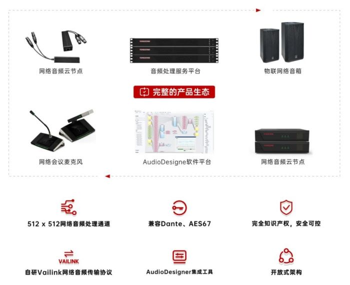 東微分布式網(wǎng)絡(luò)AI音頻處理平臺(tái)是以東微自主研發(fā)的視音頻物聯(lián)網(wǎng)絡(luò)協(xié)議VaiLink為載體打造的音頻系統(tǒng)新生態(tài)。主要由AI音頻算法處理服務(wù)平臺(tái)、網(wǎng)絡(luò)音頻云節(jié)點(diǎn)、物聯(lián)網(wǎng)絡(luò)麥克風(fēng)、物聯(lián)網(wǎng)絡(luò)音箱、網(wǎng)絡(luò)會(huì)討以及開(kāi)放式的音頻設(shè)計(jì)平臺(tái)、運(yùn)行在各平臺(tái)的定制化用戶交互軟件等組成。