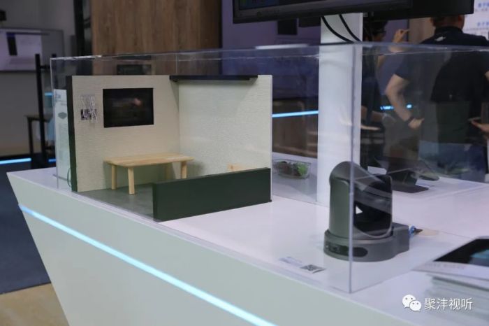 為了提高觀眾的逛展樂趣,我們?cè)谶@一展區(qū)展出了一個(gè)自制的簡(jiǎn)約酒店客房模型,并將客房?jī)?nèi)的燈光、空調(diào)、電視等設(shè)備功能集成到Q-SYS中,通過Q-SYS觸控屏便可集中控制,簡(jiǎn)單而生動(dòng)地還原功能操作,趣味感滿滿。這一模型吸睛十足,吸引了不少觀眾駐足觀賞。