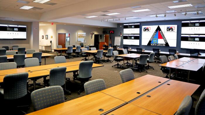 北卡羅萊納州的公共安全部門要求對其應(yīng)急指揮中心 (EOC) 的情報室進(jìn)行升級改造,并為內(nèi)部團(tuán)隊及第三方機(jī)構(gòu)增設(shè)小組討論區(qū)。設(shè)在首府羅利國民警衛(wèi)隊聯(lián)合總部的 EOC 是該州開展災(zāi)后恢復(fù)、國土安全、減災(zāi)及核事故防御等重要工作的核心根據(jù)地。因此,用戶方要求升級后的 AV 系統(tǒng)需支持集成專用軟件的計算機(jī)、媒體服務(wù)器和廣電新聞等更多信號源。用戶還可使用桌插自主連接筆記本電腦等個人設(shè)備至系統(tǒng)。顯示系統(tǒng)包括專業(yè)投影、3×3 拼接墻及不同尺寸的平板顯示器(最大 96")。此外,EOC 所有房間應(yīng)實現(xiàn)互聯(lián),且系統(tǒng)應(yīng)支持強(qiáng)大的流傳輸功能,并兼容現(xiàn)有的視頻會議和廣播系統(tǒng)。對此類關(guān)鍵任務(wù)環(huán)境而言,系統(tǒng)部署及安裝的高性能、靈活性和可靠性是重中之重。直觀的操作亦是必備條件。