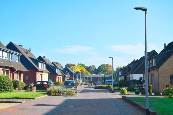 洲明為德國杜瑟多夫提供的LED節(jié)能路燈,燈體結構強度高,安裝維護便捷,流線形外觀設計,簡約靜謐。