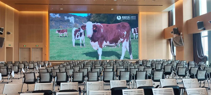 聯(lián)建光電點(diǎn)亮該中心三樓報(bào)告大廳前后兩塊150㎡的小間距大屏,報(bào)告大廳可同時(shí)容納四百人,為行業(yè)大會(huì)、集團(tuán)大會(huì)、新聞發(fā)布、科研報(bào)告等大型活動(dòng)打造智慧會(huì)議場(chǎng)景。